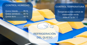 Una refrigeración industrial correcta del queso en cámaras frigoríficas o su maduración en secaderos es fundamental. El queso es el producto que resulta de una concentración selectiva de los componentes de la leche, por medio de una coagulación y extracción de un suero que porta los componentes solubles de la leche. En la constitución del queso fresco entran la caseína, sales insolubles y sustancias coloidales, así como también parte del agua de la leche en la cual encontramos la lactosa, albúmina, sales y otros constituyentes de la leche. El coágulo ya desuerado es colocado en moldes, salado y conservado en cámaras de maduración, donde el queso toma las características finales que le son propias.